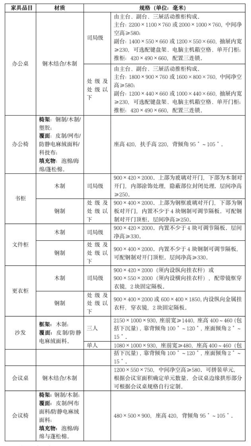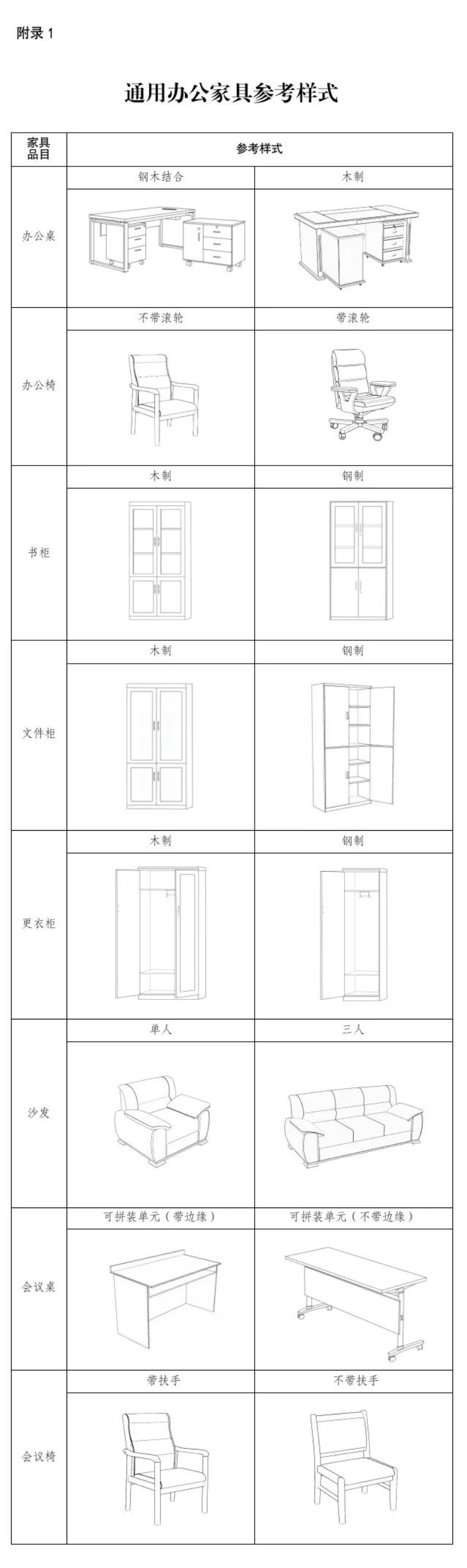 普遍适用于中央行政事业单位,配置在包括办公室、会议室等场所,满足办公基本需要的家具,不含专业类家具。