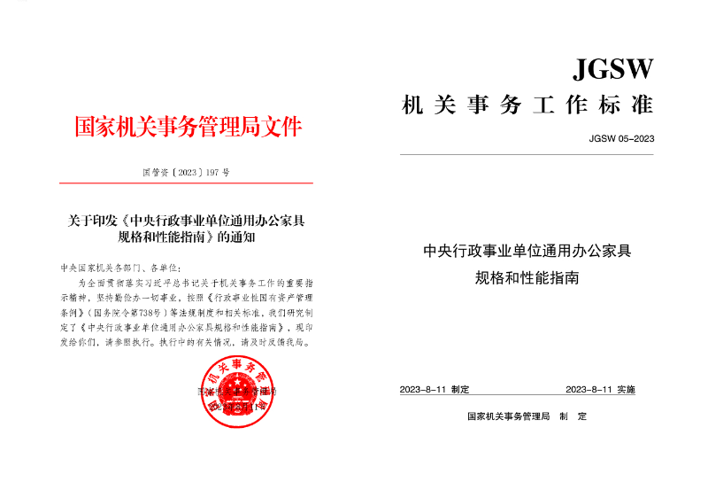 国管局印发《中央行政事业单位通用办公家具规格和性能指南》