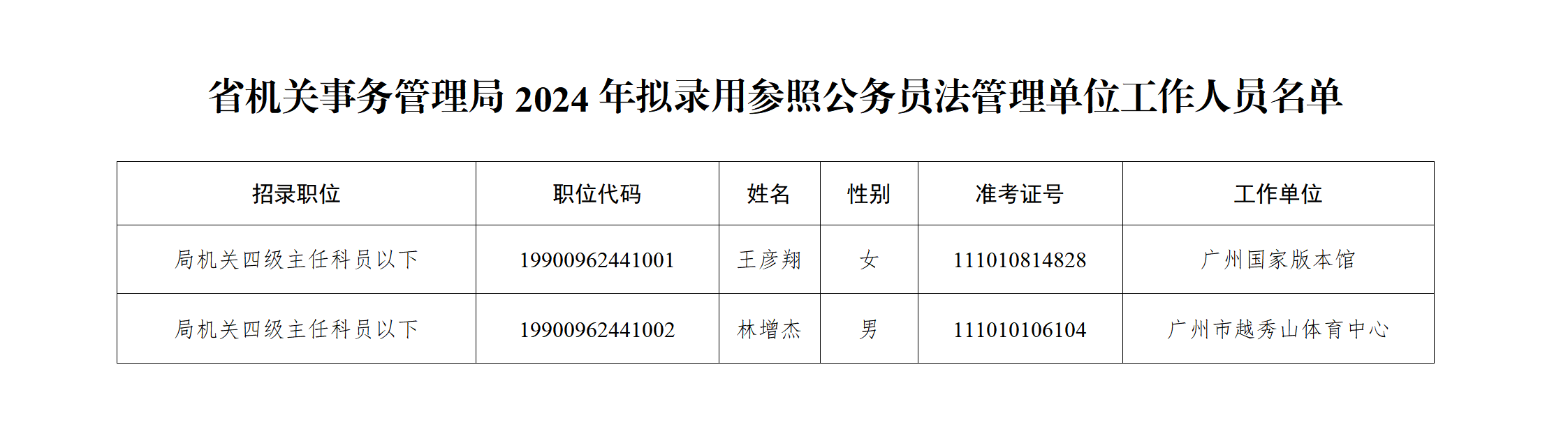附件:省机关事务管理局2024年拟录用参照公务员法管理单位工作人员名单